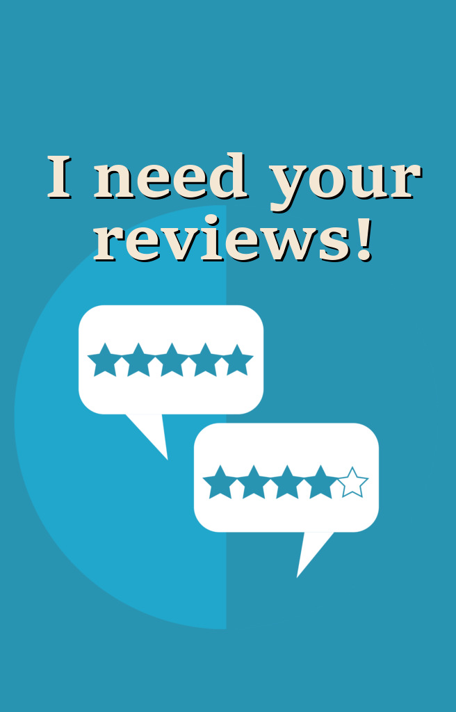 Reviews on Amazon and Goodreads are the most helpful, but if you want to post them on another retailer’s website or a personal blog, that’s great too! I’m also more than happy to get simple star ratings if you don’t feel like writing anything. Every little bit helps.